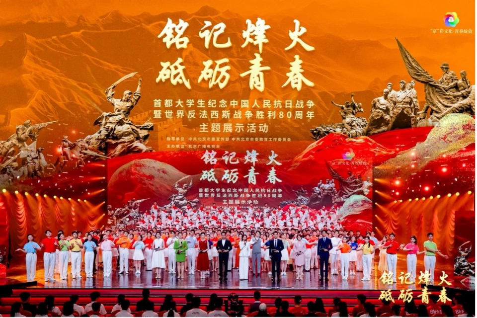 该活动由北京市委宣传部、北京市委教育工委指导,北京广播电视台倾力打造,是北京市纪念中国人民抗日战争暨世界反法西斯战争胜利 80 周年宣传重点项目之一,北京市“强国复兴有我”群众性宣传教育活动的重要组成部分,也是“‘京’彩文化 青春绽放”行动计划文艺行“广播影视秀”项目的年度重点活动。北京师范大学6位同学与其他13所首都高校的学子们,以青春视角致敬抗战历史,展现新时代青年的使命担当。他们创新融合歌曲、朗诵、情景表演等艺术形式,联袂呈现了一场文艺育人“大思政课”。