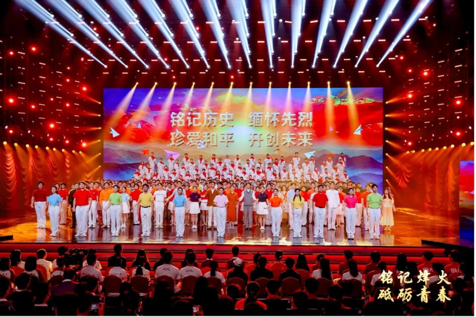 8月15日晚,“‘京’彩文化 青春绽放”行动计划——“铭记烽火 砥砺青春”首都大学生纪念中国人民抗日战争暨世界反法西斯战争胜利80周年主题展示活动在京举行,北师大等首都高校的近400名师生一起在现场观看演出。