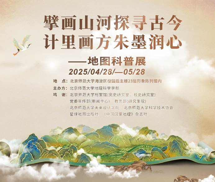 本次展览由地理科学学部主办,得到了北京师范大学档案馆(党史研究室、校史研究室)、党委宣传部(新闻中心)、教务部(研究生院)、未来设计学院、科学技术协会,星球地图出版社、《中国国家地理》杂志社等校内外单位的大力支持。