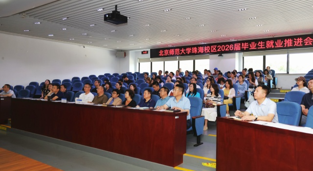 4月10日,北京师范大学珠海校区召开2026届毕业生就业推进会,会议旨在深入分析当前就业形势,凝聚全员促就业的工作合力,进一步促进毕业生高质量充分就业。北京师范大学副校长、珠海校区管委会主任孙红培,北京师范大学党委副书记、珠海校区党委书记韦蔚出席会议并作讲话,各学院书院党政负责人、学生工作负责人、就业工作辅导员、2026届毕业班班主任及珠海校区学生职业发展与就业指导中心相关人员等参加了会议。