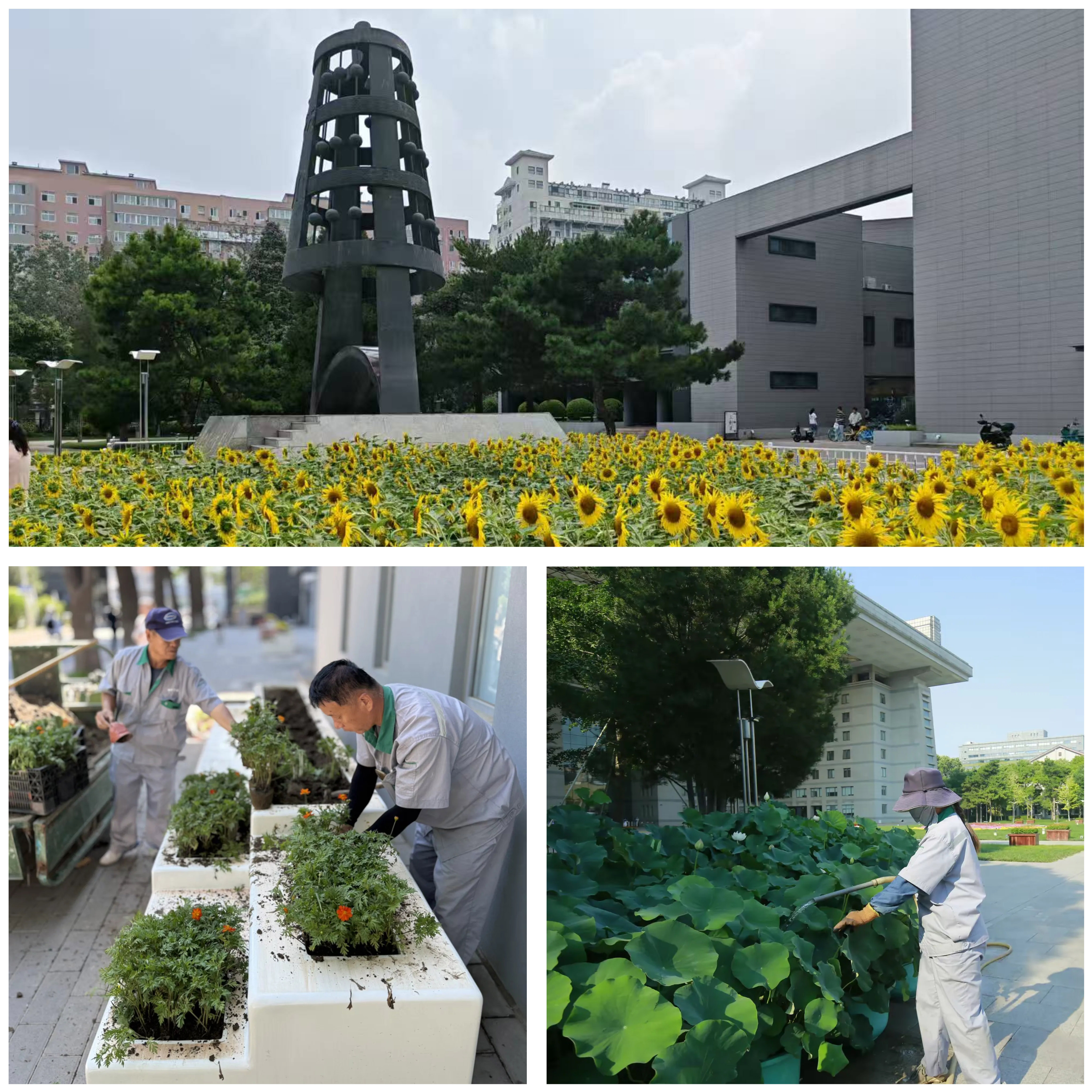 为打造温馨美好的毕业季氛围,总务部对校园进行了全面的整治与美化。在京师广场木铎金声雕塑旁、主楼东侧文字园等处种植向日葵共7000多株,向日葵象征着北师大学子向阳而生,逐光前行。在京师广场、学11楼北侧、学12楼北侧、东门等处放置30余个硫华菊种植箱,让每处景致都成为定格青春的打卡点。在京师广场两侧放置荷花300余盆,淡淡荷香伴学子奔赴新程。毕业典礼和学位授予仪式现场,工作人员忙碌穿梭,精心布置场地、调试设备,为毕业生们留下一帧帧完美的回忆。物业管理中心的工作人员认真地在校园各处悬挂起毕业条幅,将不舍和祝福系在熟悉的角落。