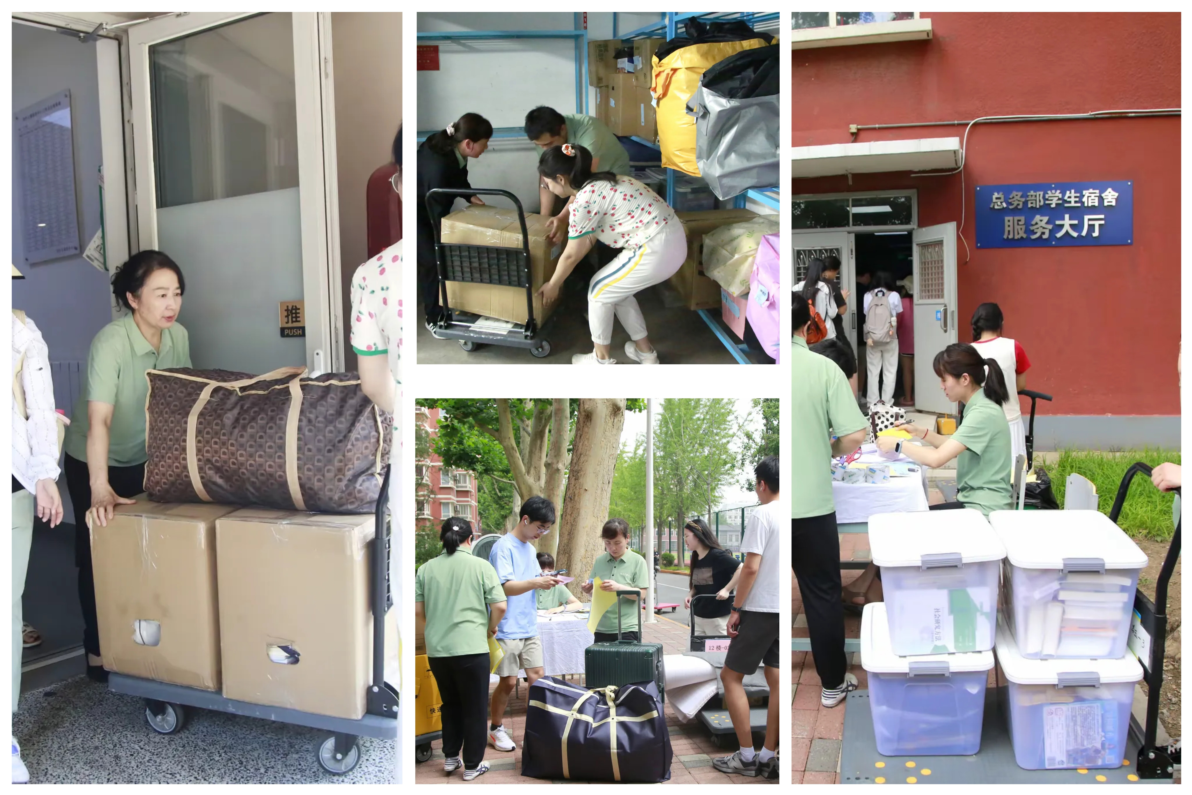 为解决毕业生行李搬运难题,总务部提前准备,整合运力资源组建志愿服务队,以一系列便捷举措助力毕业学子轻装奔赴新征程。保卫处开放社会车辆入校通道,设置毕业生行李运输社会车辆专用通道,安排专人引导调度,既保障校园秩序,又确保行李搬运车辆高效通行。同时,为优化校园出入管理,保卫处向预约访客开放西二门,为广大师生尤其是毕业季学生亲友入校提供了便利。总务部物业管理中心成立服务小分队,为毕业生提供协助搬运服务。由物业管理中心提供的多辆静音小推车穿梭在宿舍楼间,服务小分队实行“点对点”服务,从宿舍到校门的最后500米,毕业生不需要扛着行李箱爬坡。昌平、育荣校园的行李专车也让两个校园的学生享受“行李无忧”的离校体验。针对继续攻读本校硕士、博士研究生的毕业生,物业管理中心推出行李免费寄存服务,用实际行动为毕业生减负。6月19日至6月30日,物业管理中心共为953名学生寄存行李3542件。总务部还提前与中国邮政、顺丰、京东、圆通、申通、韵达6家物流企业协商议价,为毕业生节省行李运费。