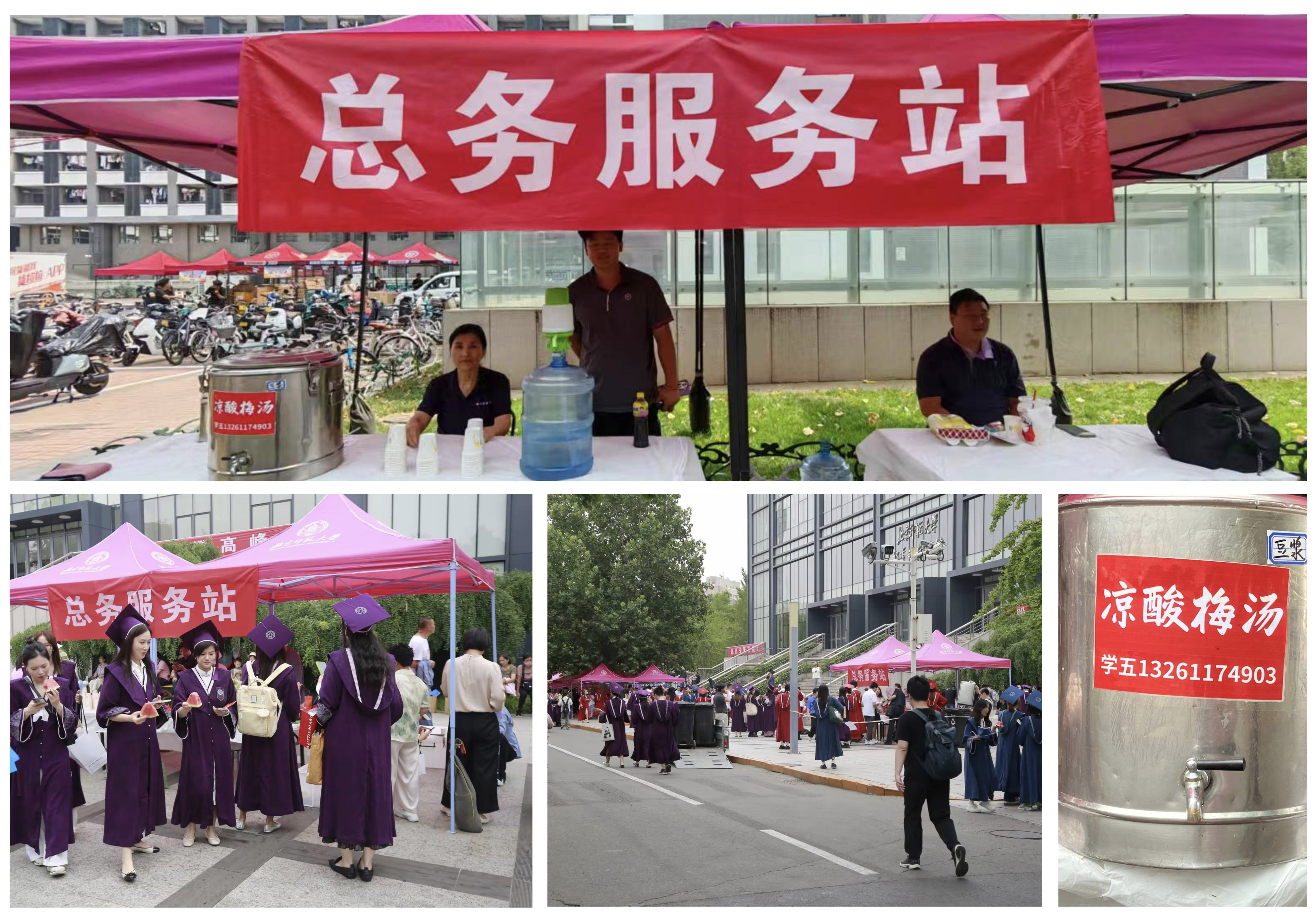 在今年的毕业晚会上,餐饮服务中心为毕业生制作了2000盒点心,让学子们在品尝美味的同时,留存一份独特的母校滋味。毕业典礼,餐饮服务中心准备了刚采摘的西瓜,这是送给毕业生和家长们的清凉心意。在校园里设置的多个总务服务站,让毕业生们离校办理毕业手续、整理行李时,随时能喝到酸甜沁爽的酸梅汤消暑解渴。同时,校内多家商铺推出优惠活动:眼镜店配镜4折起,美容美发店推出毕业季特惠折扣,超市推出多种商品大力度促销活动等。