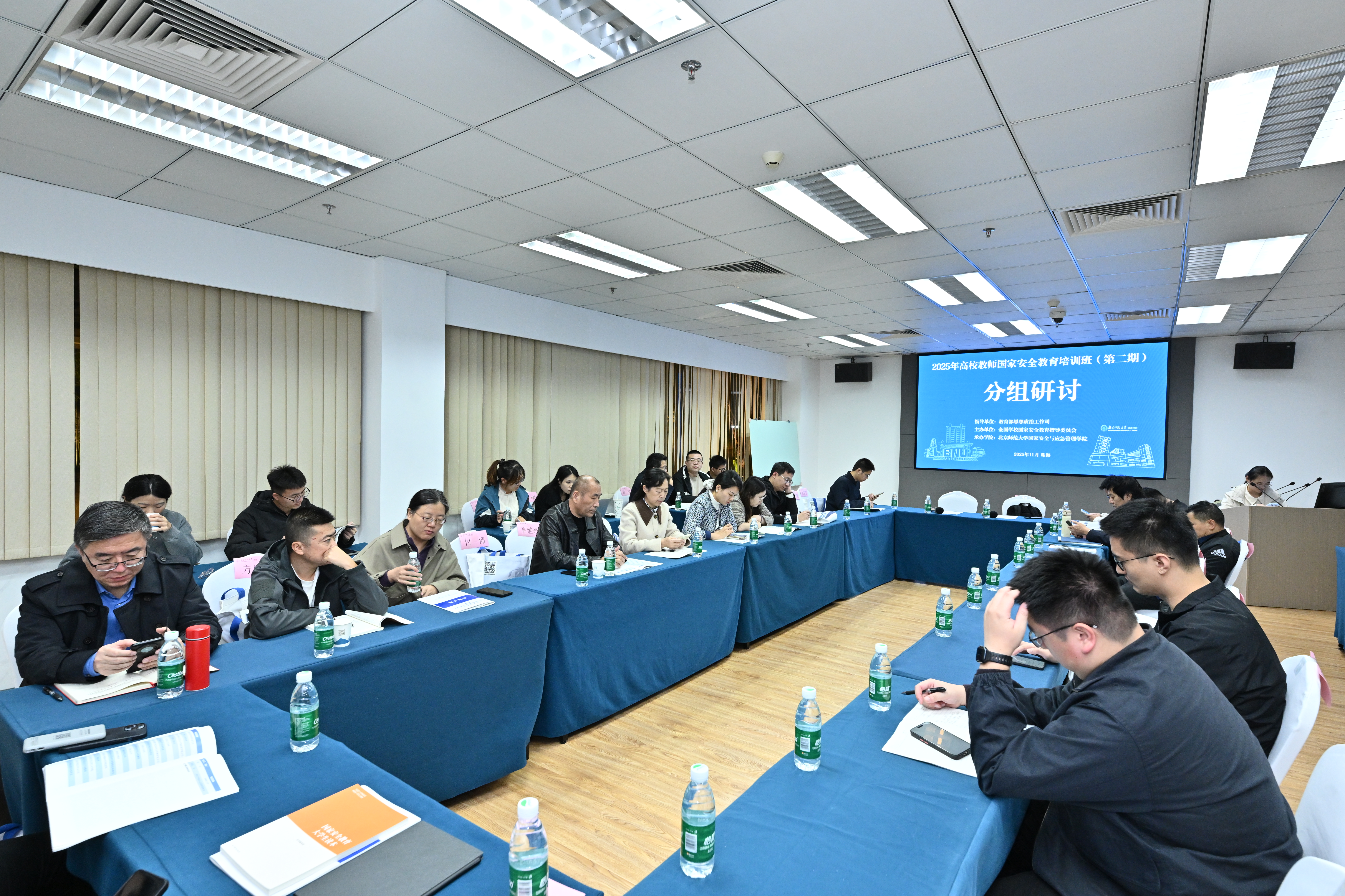 19日晚上分组讨论环节,参训老师分五组,围绕高校国家安全教育的课程开设情况、教学重难点、教材使用等方面进行交流分享。