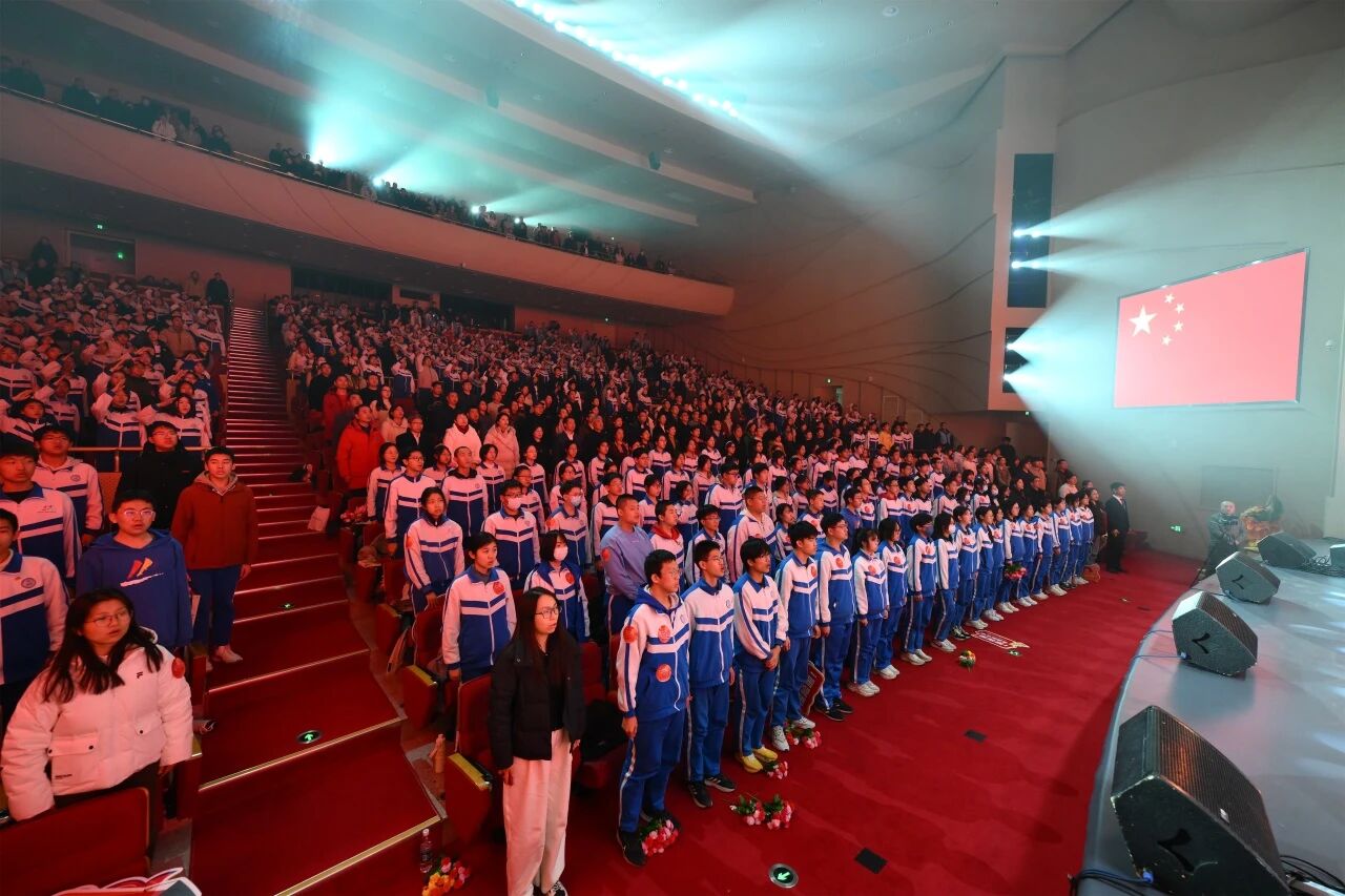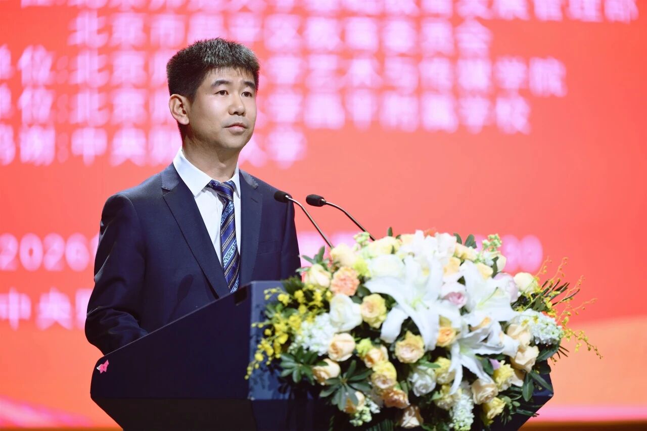 北师大昌平附校党委书记、执行校长王鹏飞致辞。他表示,学校始终将戏剧教育深度融入育人实践,通过“木铎剧社”创作了多部优秀剧目,展现出学校“五育并举”的显著成果。他鼓励学生在舞台上感悟责任、激发创新,带着热爱踏入今夜的戏剧星河。