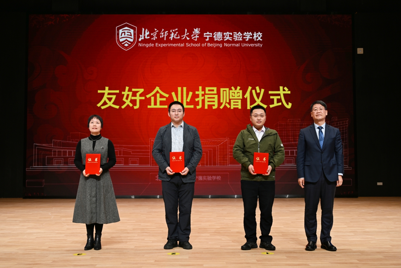 为支持学校创新发展,服务教育强国建设,北师大旗下企业京师慕华、京师妙笔及出版集团分别向学校捐赠C919飞机头教学模型、智慧操场系统及一批优质图书。这批捐赠物资为第七届教育创新成果公益博览会上展示的优秀成果。北师大宁德实验学校校长孙定国为捐赠教学物资的企业颁发捐赠证书。