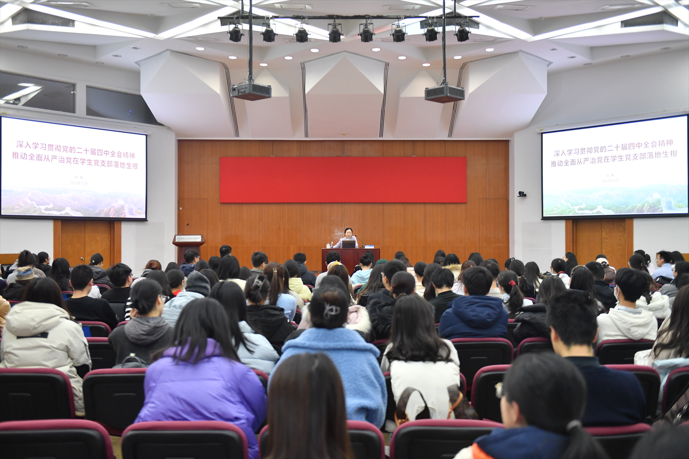为深入学习贯彻党的二十届四中全会精神,推动全面从严治党向纵深发展,增强学生党员纪律意识,12月11日,学校党委副书记、纪委书记,国家监委驻北京师范大学监察专员刘辉以《深入学习贯彻党的二十届四中全会精神 推动全面从严治党在学生党支部落地生根》为题为学生党支部书记讲授专题思政课。来自各院(系)的学生党支部书记、支委等280余人参加了报告会。