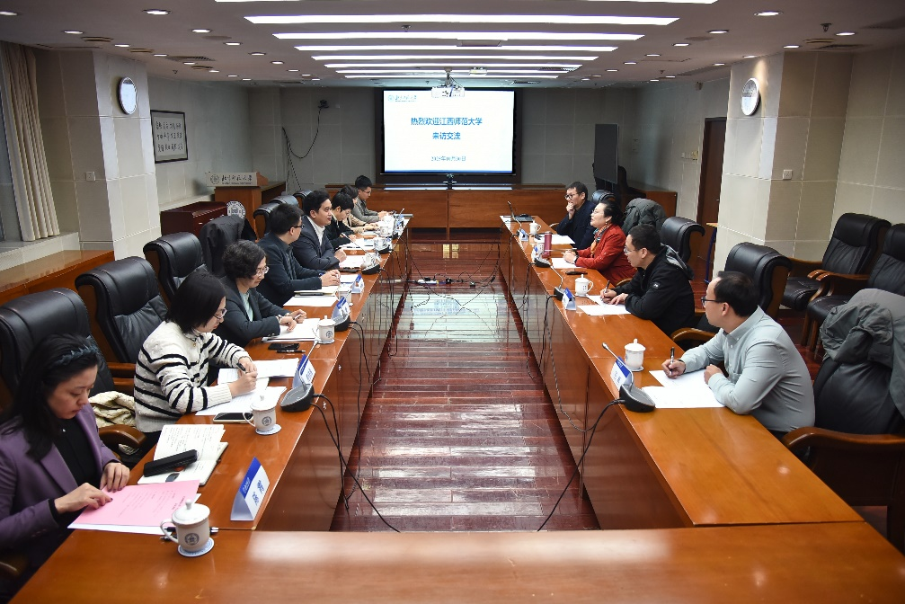 汪明对江西师范大学一行来访表示热烈欢迎。他提到,两所大学同属师范高校,有着天然的联结,期待以此次交流为起点,进一步推动两校在教师教育、人才培养、学科建设、科学研究、社会服务等领域的沟通合作,充分发挥各自区位和学科优势,共同为教育强国、科技强国、人才强国建设作出更大的贡献。