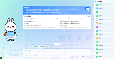 4月,图书馆试运行发布AI馆员——师小图。这是图书馆应用AI技术打造的24小时全天候智能咨询馆员。它是一套高效且智能的人机交互系统,旨在为读者带来流畅、自然的交流体验。AI馆员可以实现对纸电资源的自然语言增强检索;基于书籍全文内容为用户生成精准、简洁的核心观点总结,实现增强阅读;可以实时对接图书馆活动系统,及时获取最新、最全面的活动信息;可以实现对图书馆已有系统功能调用,直接完成图书续借、续约、座位和研究间预约等服务功能。