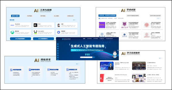 “生成式人工智能专题指南”有效破解资源整合困境,构建系统化学习平台,以满足我校广大师生在学习、科研、工作等不同场景下合理使用AI的迫切需求,助力全面提升智能时代的AI技术应用能力、伦理决策能力、批判反思能力、跨学科创新能力等核心能力,培养具有AI素养能力的新时代公民。