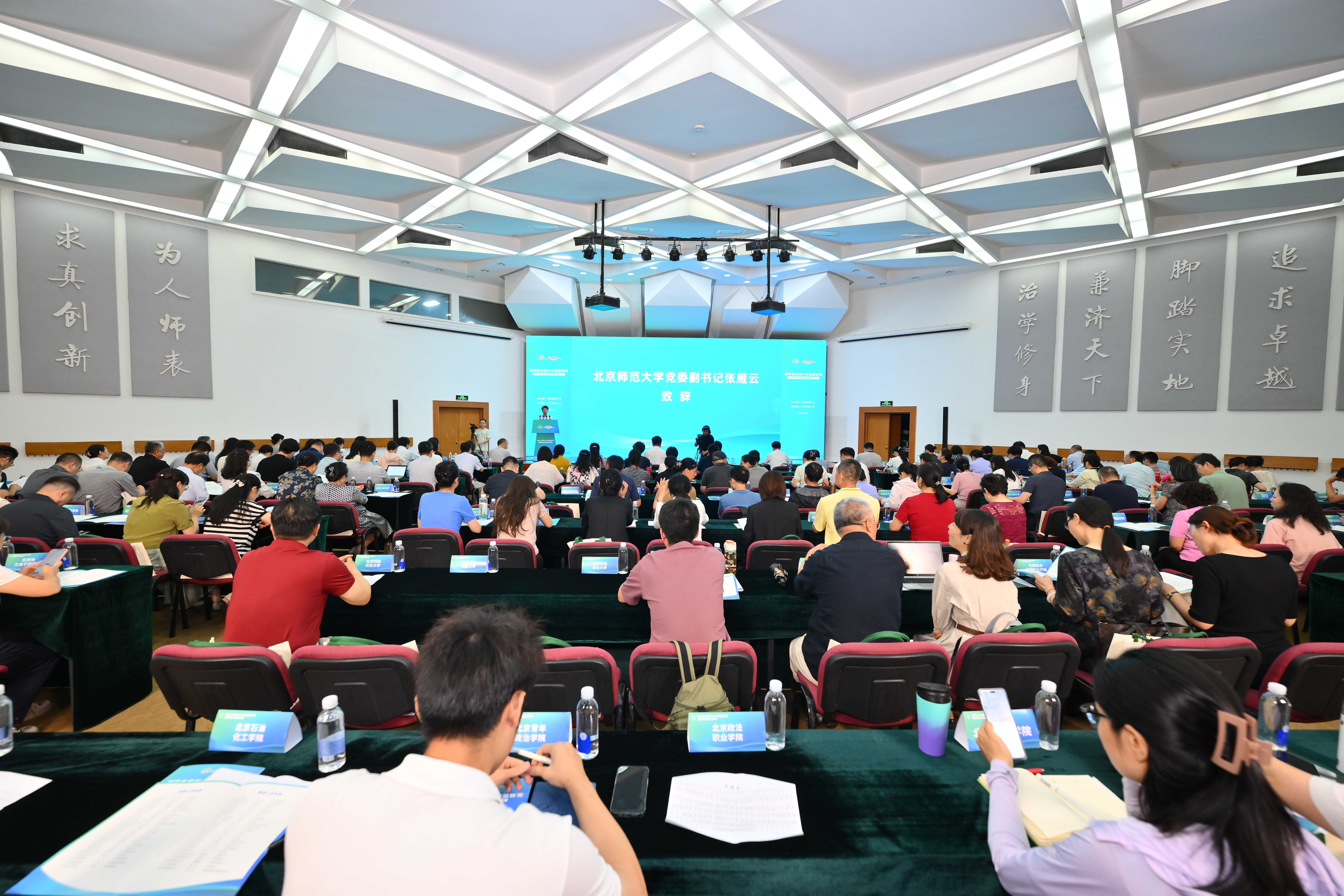 7月2日下午,“面向未来的大学课堂教育——北京高校青教赛创新发展研讨会”在北京师范大学英东学术会堂演讲厅举行。本次研讨会由北京市教育工会主办、北京师范大学工会承办,以纪念北京高校青年教师教学基本功比赛创办30周年为契机,系统总结青教赛的重要成果与丰富经验,探讨面向未来大学课堂教育的模式、方法和路径。北京市总工会党组成员、副主席张文涛,北京市教育工会主席宋丽静,北京师范大学党委副书记张雁云等领导出席并讲话,北京市教育工会系统高校及附属医院工会和教学部门负责人、教学名师、青教赛评委、青教赛获奖教师代表等150余人参会。会议由北京师范大学工会常务副主席于亚梅主持。
