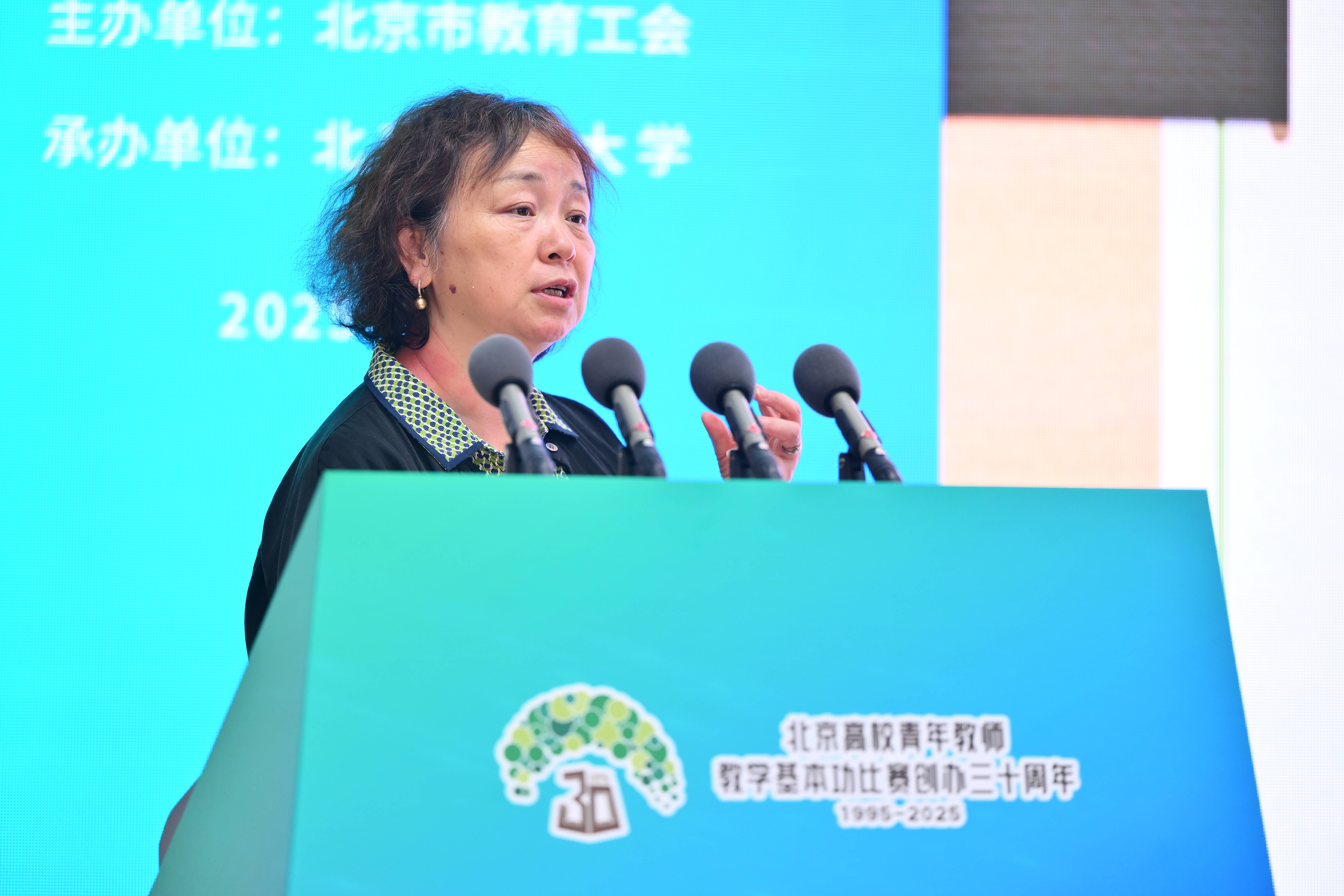 宋丽静在讲话中充分肯定了本次研讨会的成果,强调了青教赛对于教师成长、教学理念深化和课堂改革的推动作用。她指出,青教赛通过多层级竞赛体系,促进了教师职业素养提升和教学技能优化,同时推动高校完善教师发展机制,建设教学工作室和资源平台。在北京高校青教赛新的历史起点上,希望各高校将本次研讨会成果转化为实际行动,助力高校教师队伍建设和教育高质量发展。