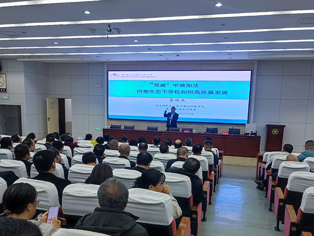 厦门市北附教育集团原校长、党委书记蔡稳良以《“双减”中做加法,内卷生态下学校如何高质量发展》为题为中阳县约200名教师开展培训。