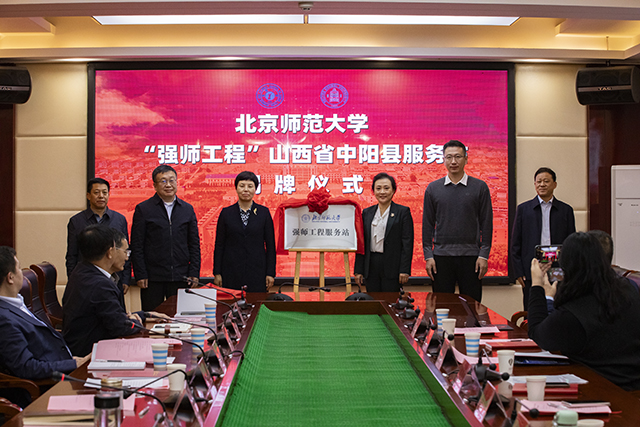 为落实学校党委关于“强师工程”的决策部署,助力县域教师队伍建设、“县中振兴”行动计划,北京师范大学“强师工程服务站”(中阳站)揭牌仪式于10月23日在山西省中阳县举行。山西省教育厅二级巡视员徐岩章,吕梁市委教育工委书记、市教育局局长赵雪宏,中阳县政府县长孙燕飞,县委常委、政府副县长任海涛,北京师范大学强师工程办公室、珠海校区、继续教育与教师培训学院相关负责同志,山西省教育厅教师处、中阳县政府、中阳一中相关部门负责同志及北师大附校专家参加活动。