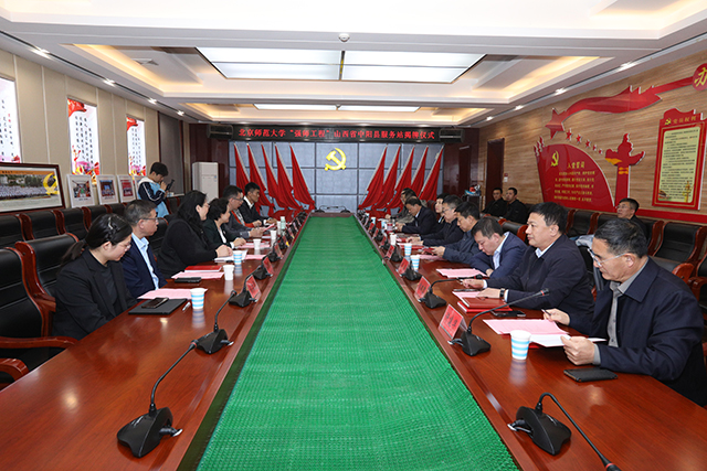 揭牌仪式后,北师大一行与中阳县政府、中阳一中相关部门负责同志召开“强师工程服务站”(中阳站)教育帮扶工作专题会,就“优师计划”师范生实习实践、人才引进和中阳县教师能力提升项目进行研讨对接。