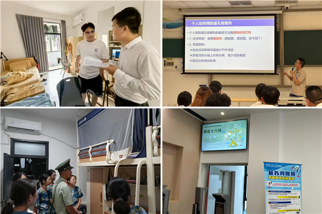 在学生社区,各学院、书院和学工部门全覆盖走访学生宿舍,科普防蚊灭蚊知识,指导学生清理积水、整治蚊虫孳生地。时值学生军训期间,珠海校区将军训工作与爱国卫生运动深度融合,通过每日健康监测、内务评比等举措,将防蚊防疫要求融入军训全过程。并通过新媒体推送和宿舍楼电子屏、语音播报等线上线下相结合的方式加强宣传教育,持续强化爱国卫生运动宣传。