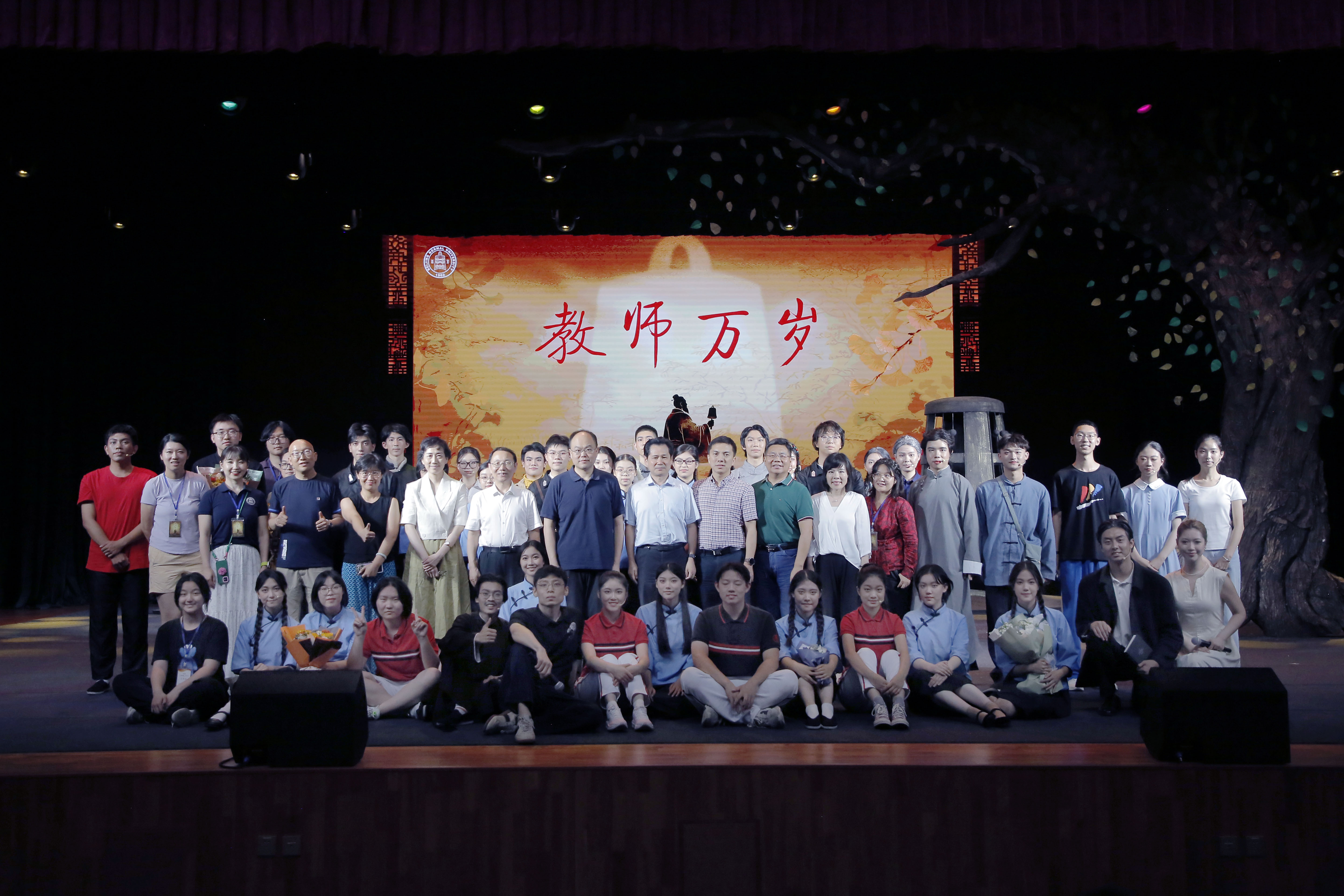 7月9日晚,原创教育戏剧《教师万岁》首次以“大学舞台+多校协同”模式在北京师范大学学生活动中心演出。北京师范大学各职能部门、学部(院系)负责人、直属附校及集团校领导以及大中小学师生、家长代表700余人齐聚一堂,共同溯源师道、致敬教育家精神。