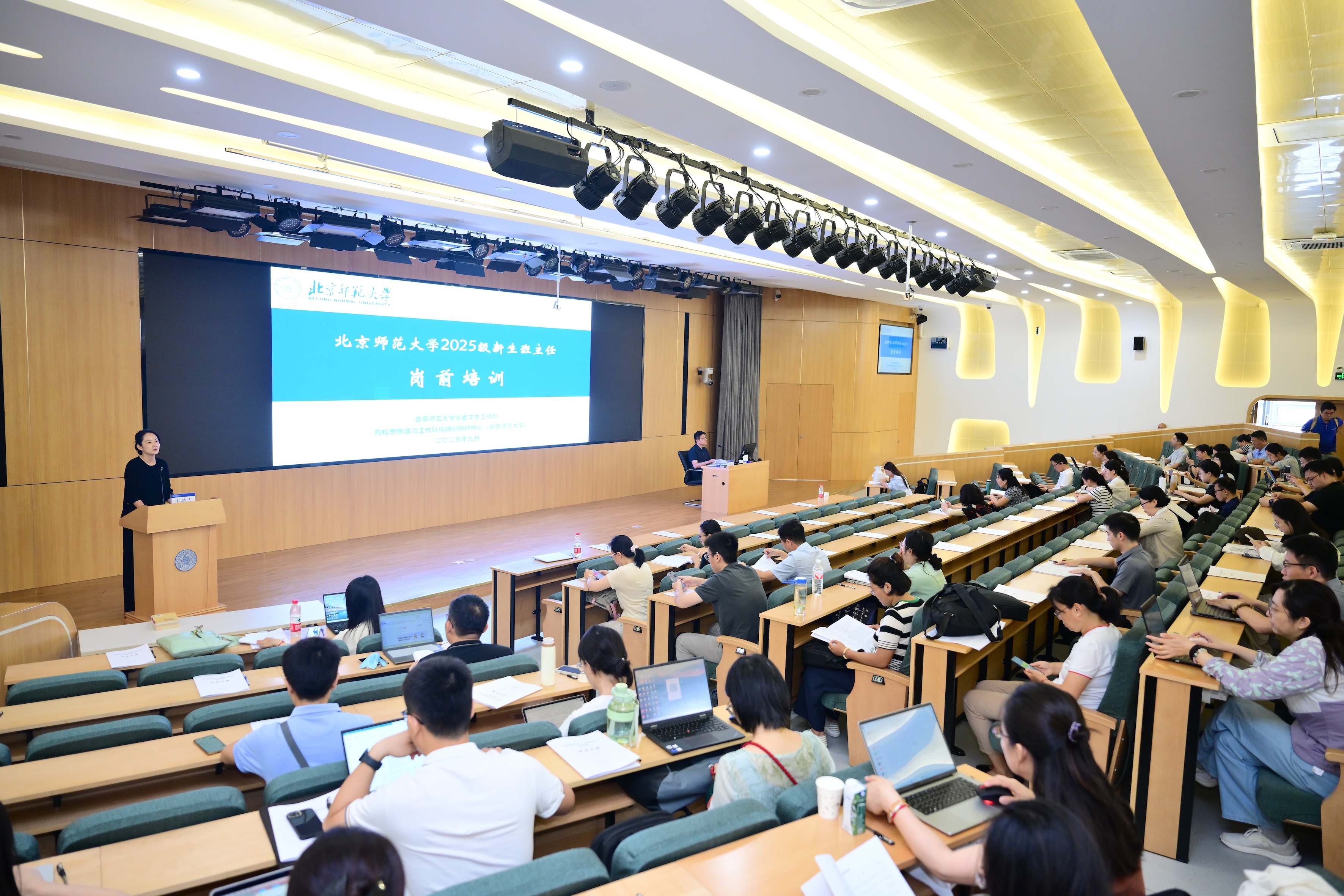 9月4日至5日,北京师范大学举办2025级新生班主任岗前培训。党委学生工作部、校团委有关负责同志,院(系)学生工作负责人以及优秀辅导员代表受邀作专题报告,来自各院(系)的160余名新生班主任参加培训。