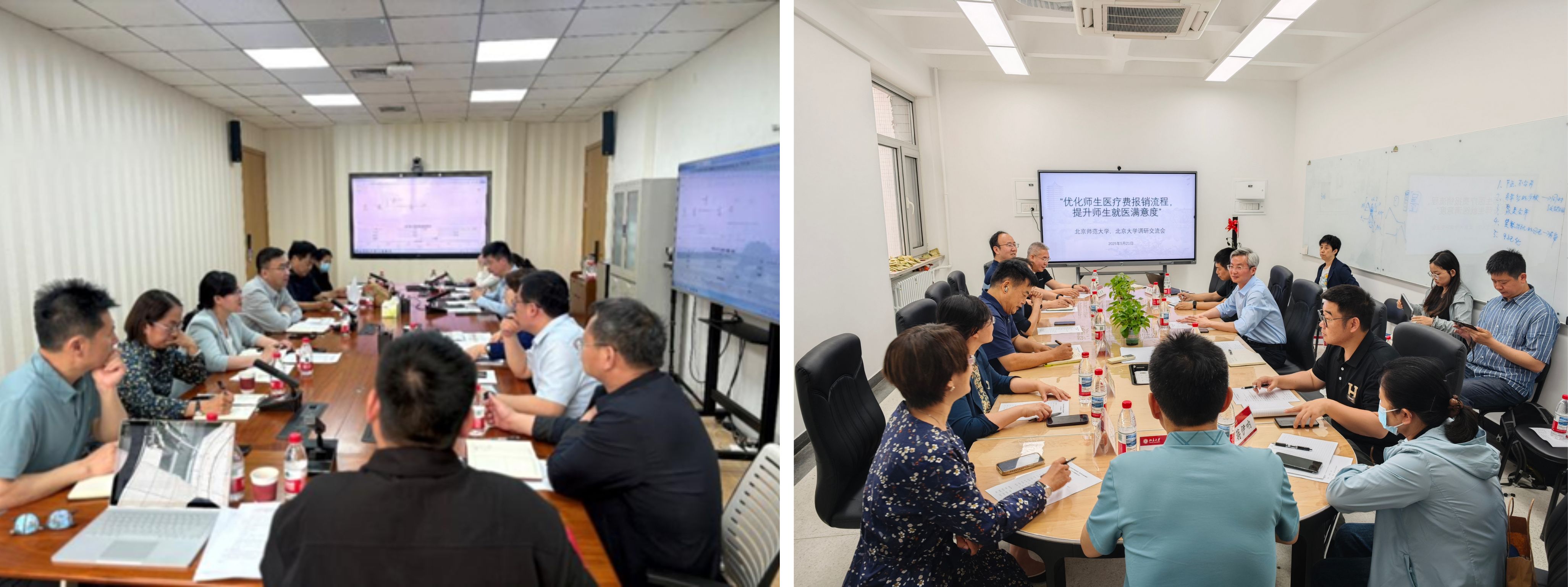 左:项目组赴清华大学调研 右:信息网络中心、校医院、财经处研讨
