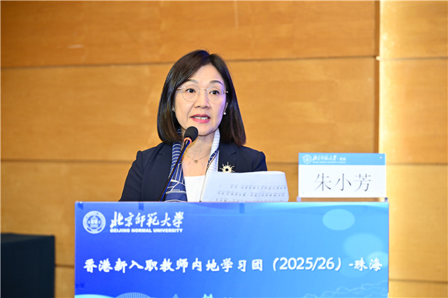 朱小芳在发言中感谢北京师范大学珠海校区为本次培训所做的精心准备。她指出,国家高度重视教师队伍建设,香港教育局积极推动教师赴内地交流,以提升专业能力、深化国家观念。她鼓励教师们珍惜此次机会,用心观察、聆听与感受,共同讲好国家教育故事,履行“为国育才”的使命。