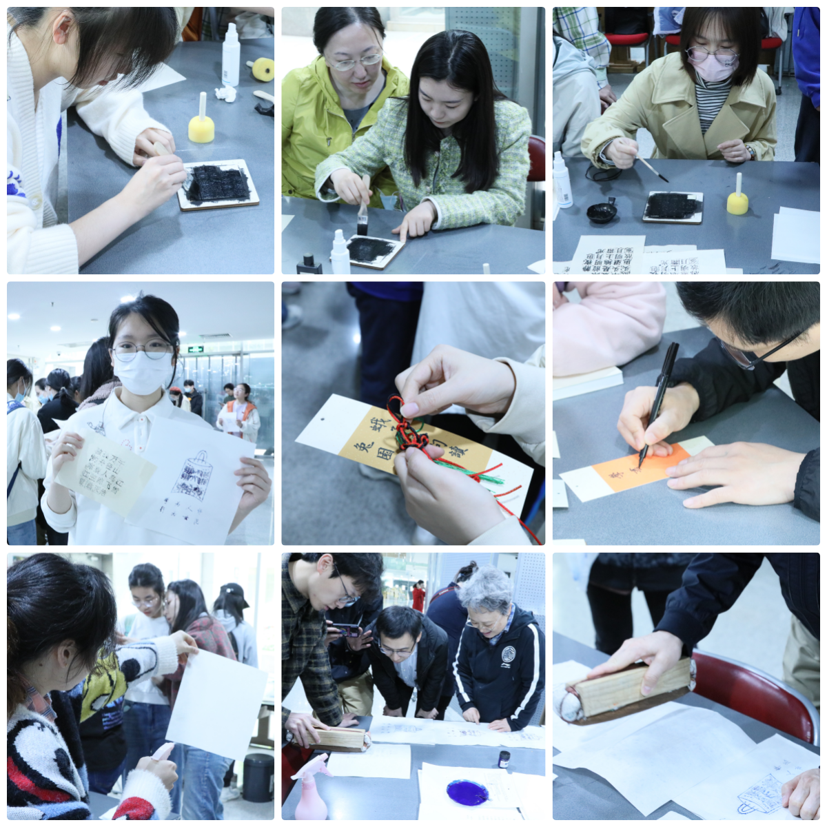 习近平总书记指出“中国优秀传统文化的丰富哲学思想、人文精神、教化思想、道德理念,可以为人们认识和改造世界提供有益启迪。”为弘扬中华优秀传统文化,让更多的师生亲身体验和感受传统文化魅力,图书馆特别策划木铎校训雕版印刷、古诗活字印刷、文昌结编织等传统文化现场体验活动,让师生在体验传统工艺的同时深切感受文化传承的重要意义。“开卷有益”“以书会友”“书生万物”“碎玉成篇”“书中相遇”等现场互动活动,在校园内营造出青春洋溢、书韵悠长的读书热潮。