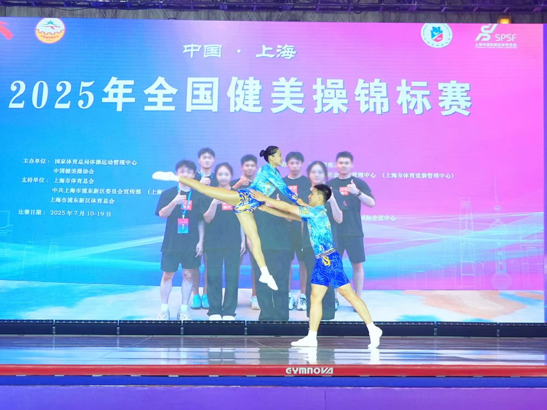 2025年全国健美操锦标赛于7月11日至18日在上海三甲港绿地国际会议中心落幕。本次赛事规模空前,汇聚了来自全国各地的120多支顶尖队伍、1400余名健美操运动员同台竞技。北京师范大学健美操高水平运动队在体育与运动学院党委书记张玉新和教练张卓的带领下,以昂扬的斗志、精湛的技艺和顽强的拼搏精神,勇夺两项冠军,并创下全员晋升“国家级运动健将”的纪录。