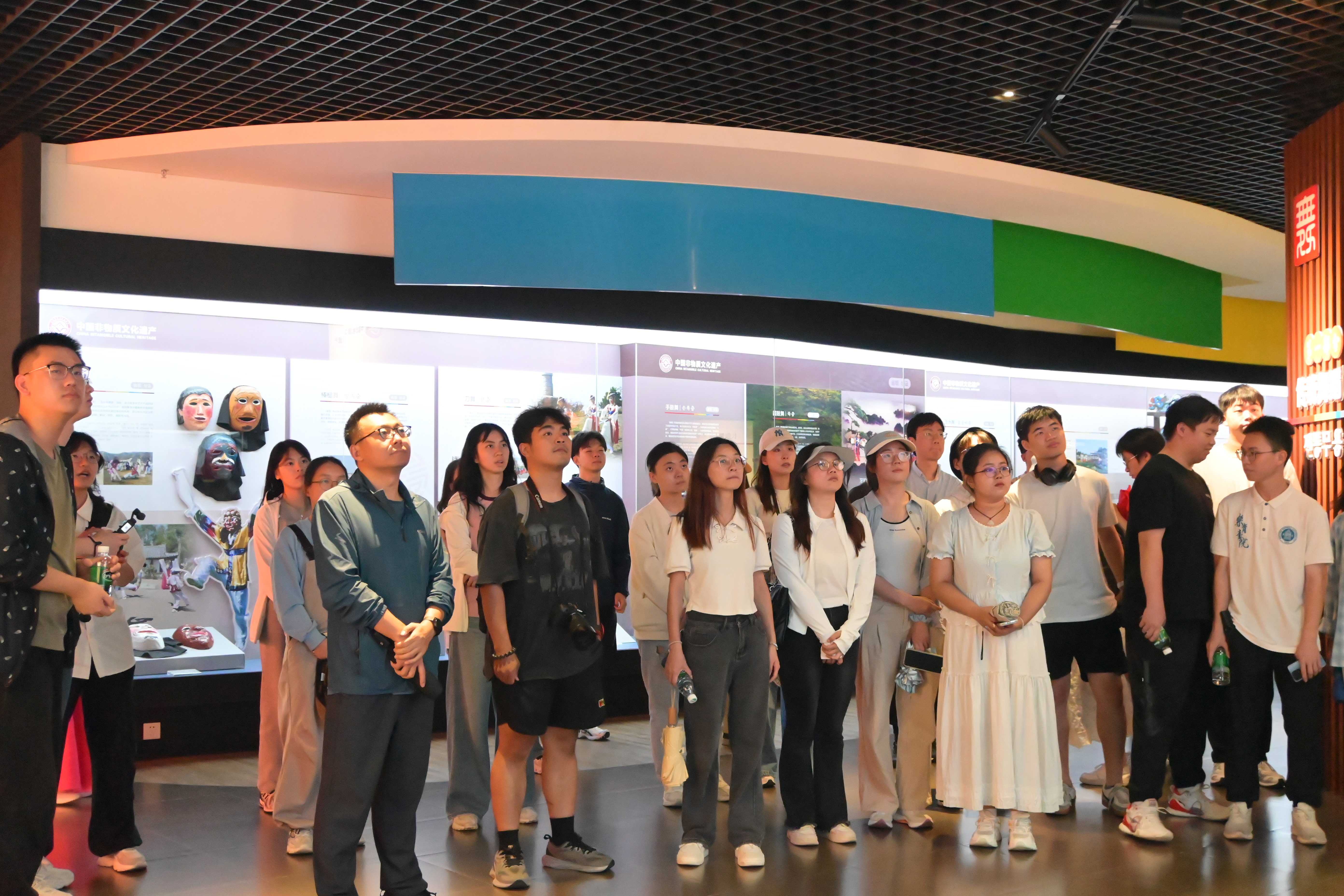 实践团师生深入探寻延边文化根脉,先后来到延边州博物馆与朝鲜族非物质文化遗产馆。在博物馆厚重的历史氛围中,师生们系统梳理了先民在延边大地上生息繁衍、闯关越江、共建家园的艰辛开拓史,以及在此过程中自然交融、汇聚共生的历程。在朝鲜族非物质文化遗产馆,师生们通过文物与讲解加深理解,沉浸式体验了朝鲜族象帽舞的飞扬律动与长鼓的铿锵节奏。这些活态传承的文化瑰宝,让书本上的“多元一体”变得可触可感,生动彰显了中华文化的蓬勃活力与独特魅力,也让大家对其中赓续不断的中华民族历史文脉与中华文明的深邃价值有了更深切的认同。外国语言文学学院2023级本科生谢宇成感慨道:“这里有许多生动展现各民族交流互鉴、多元凝聚的鲜活故事。了解到《新唐书》记载的唐中宗册封渤海郡王史实后,我意识到,延边大地上各民族共同书写中国历史、共创中华文化的壮丽图景,在千年前就已展开!”