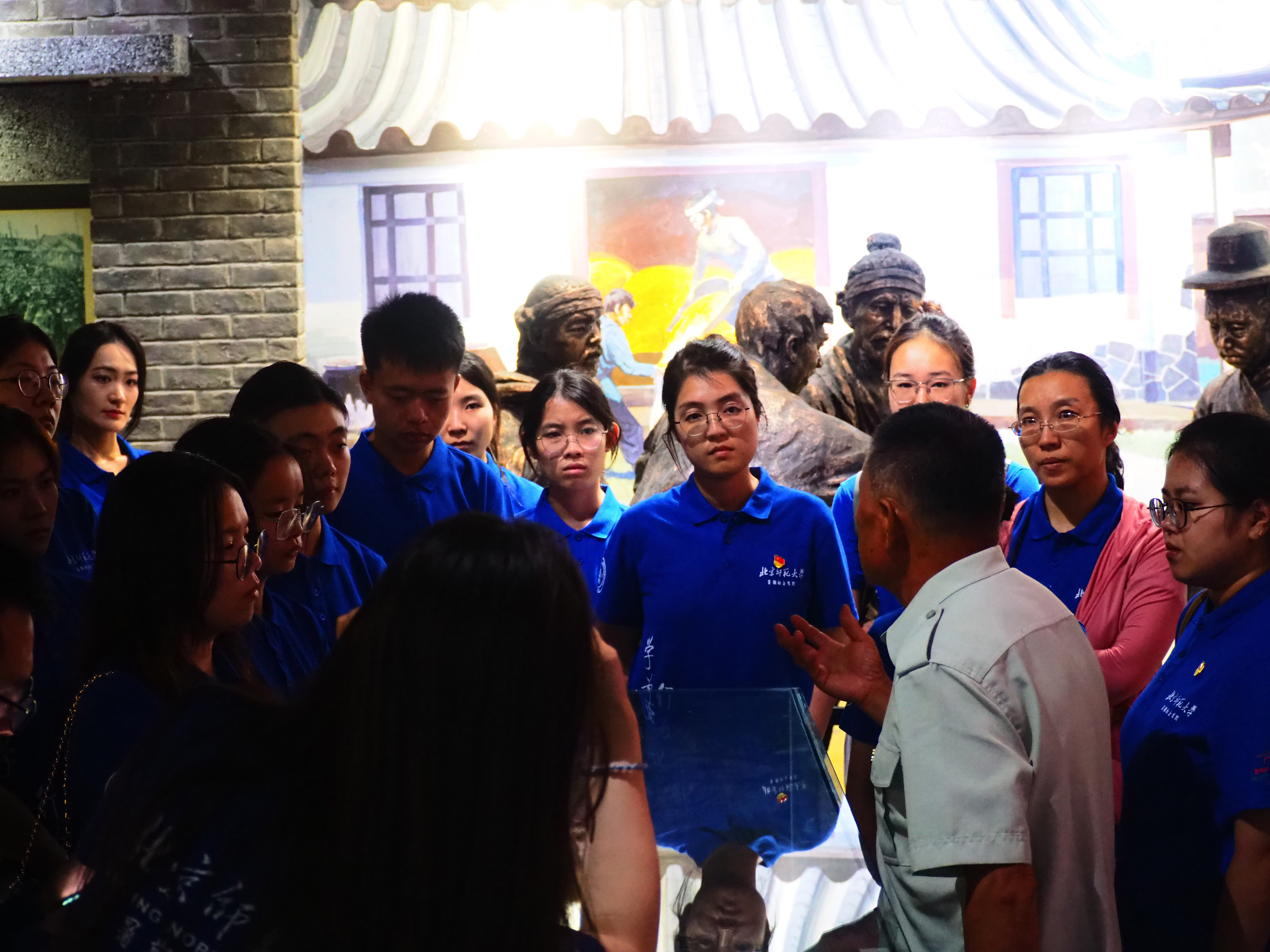 为纪念中国人民抗日战争暨世界反法西斯战争胜利80周年,在7月1日中国共产党成立纪念日,团队走进珲春市大荒沟党史纪念馆,共同聆听了一堂生动的党课、团课。年逾六旬的珲春市密江乡大荒沟村党支部书记刘国信,饱含激情地向师生们讲述了各族群众在东北解放斗争中共同浴血奋战的光辉历史。活动现场,党员同志庄严重温入党誓词,全体团员则通过组内研讨,深切缅怀历史,感悟传承抗战精神的时代重任。转赴太兴村,乡村振兴专职干部李畅带领大家追寻延边地区从抗战烽火到新时代振兴的红色发展脉络。从精神矍铄的老书记到扎根基层的青年党员,两代人的深情讲述跨越时空却同频共振。正如文学院2023级王瑞彤所言:“这份由先烈点燃、由前辈守护、如今传递到我们手中的精神火炬,照亮的不只是历史,更是我们这代青年前行的道路与肩头的责任。”