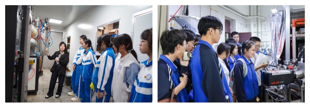 5月23日下午,活动启动。在演示实验室中,来自四所北师大附中的学生们通过动手操作力电经典实验、探究声音本质、探寻光的奥秘,将抽象的物理理论转化为触手可及的实践成果。在教师指导下,同学们观察实验现象、总结交流。同时,学生们还走进多尺度自旋物理教育部重点实验室、射线束技术教育部重点实验室等,近距离接触实验设备,聆听专业人员讲解设备原理及前沿应用。这种沉浸式体验不仅让学生们对物理学研究方法有了直观认知,更激发了他们对科学探索的热情。