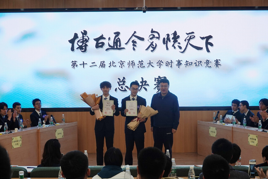 4月2日晚,“博古通今 胸怀天下”第十二届北京师范大学时事知识竞赛总决赛在教九楼502教室举办。比赛由党委学生工作部、历史学院主办,“形势与政策”小组承办。相关职能部处和学部院系的负责同志、专家学者、校友代表等出席活动。