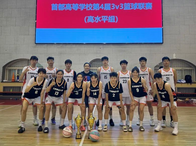 6月22日,由北京市大学生体育协会主办,北京市大学生体育协会篮球分会举办的“首都高等学校第4届3v3篮球联赛”落下帷幕。在北京师范大学体育与运动学院领导、老师的支持与鼓励下,在领队张玉新的带领下,北京师范大学高水平女子篮球队员们在主教练李笋南、助理教练赵雪同和邵婷老师的指导下顽强拼搏,夺得冠军。同时,北京师范大学高水平男子篮球队员们在主教练宋陆陆的指导下奋勇前进,蝉联首都高等学校3v3篮球联赛高水平组冠军。